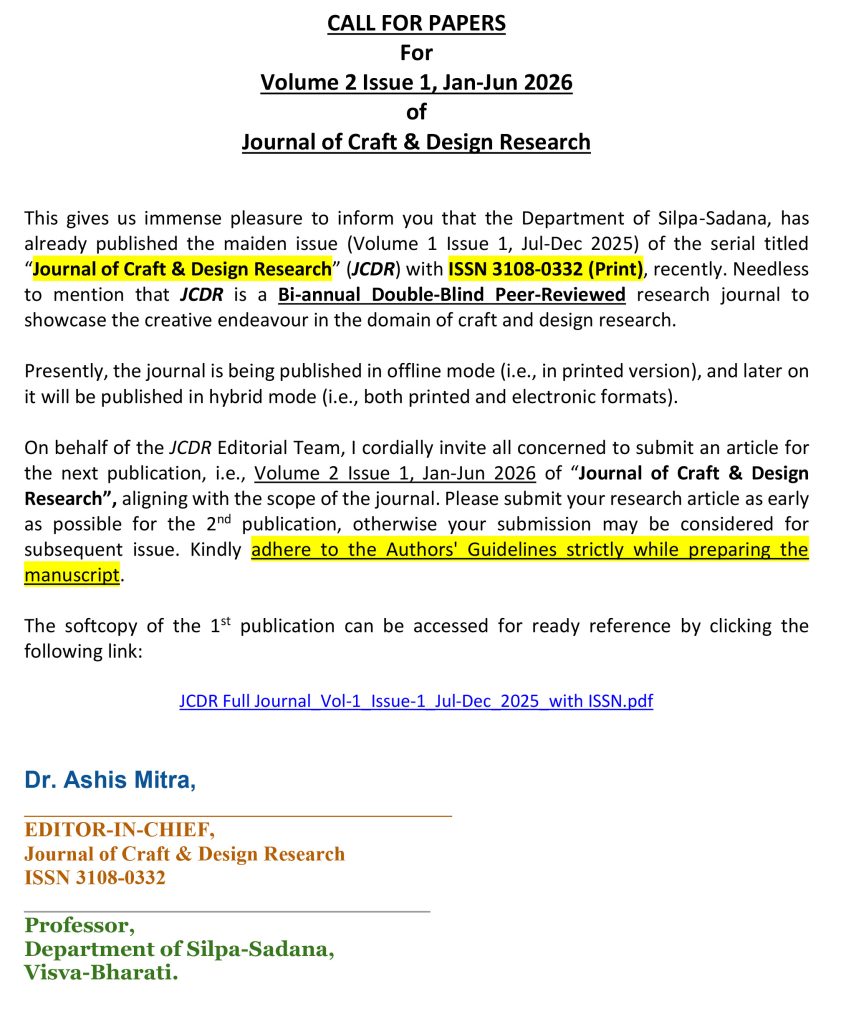 Silpa-Sadana was established as an integral part of Tagore’s Sriniketan experiment on Rural Re-construction. It is a pioneering institute in India in developing and revitalizing cottage industries and craft, since its inception. Silpa-Sadana is probably the only institute in India where academic activity was not initiated from the very inception, rather it initiated the production of craft-based items for the socio-economic empowerment of the rural mass, academic activities were started later on to augment the production activities, instead. Silpa-Sadana has always been ready to adopt need based academic curriculum as its prime activity. It never ignored the production activity or the extension activity as a supplementary to teaching and research. The present Silpa-Sadana is devoted to providing various technical training and production activities in various craft-based trades for the benefit of the rural sector, especially, apart from offering various academic programs e.g., Bachelor of Design (B. Des.), 4-Year UG Programs under NEP 2020 framework, Masters of Design (M. Des.), and Ph.D. in Design under UGC structure.