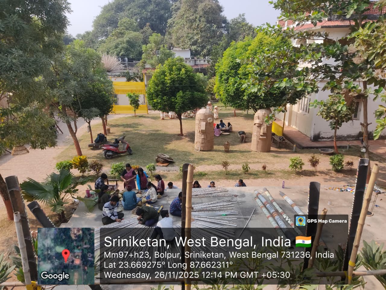 Initially, Weaving, Calico Printing, Durry making, Batik work, Leather work, Lacquer work, Book Binding and Carpentry were started working there. Later, the activities were shifted to the new building and became the ‘Industries Department of Sriniketan’. With a view to expansion of the business and also running these huge activities smoothly, the Industries Department was reframed and converted into an independent organization in 1937 under control of an independent managing board. In 1938, the Industries Department was renamed Silpa Bhavana. In 1951, Visva-Bharati became a Central University, and came under the purview of UGC just like other universities of our country. Consequently, as a compulsion to initiate some structured academic program to fit in the UGC structure, Silpa-Bhavana was renamed Silpa-Sadana under Palli Samgathana Vibhaga (Institute of Rural Reconstruction).